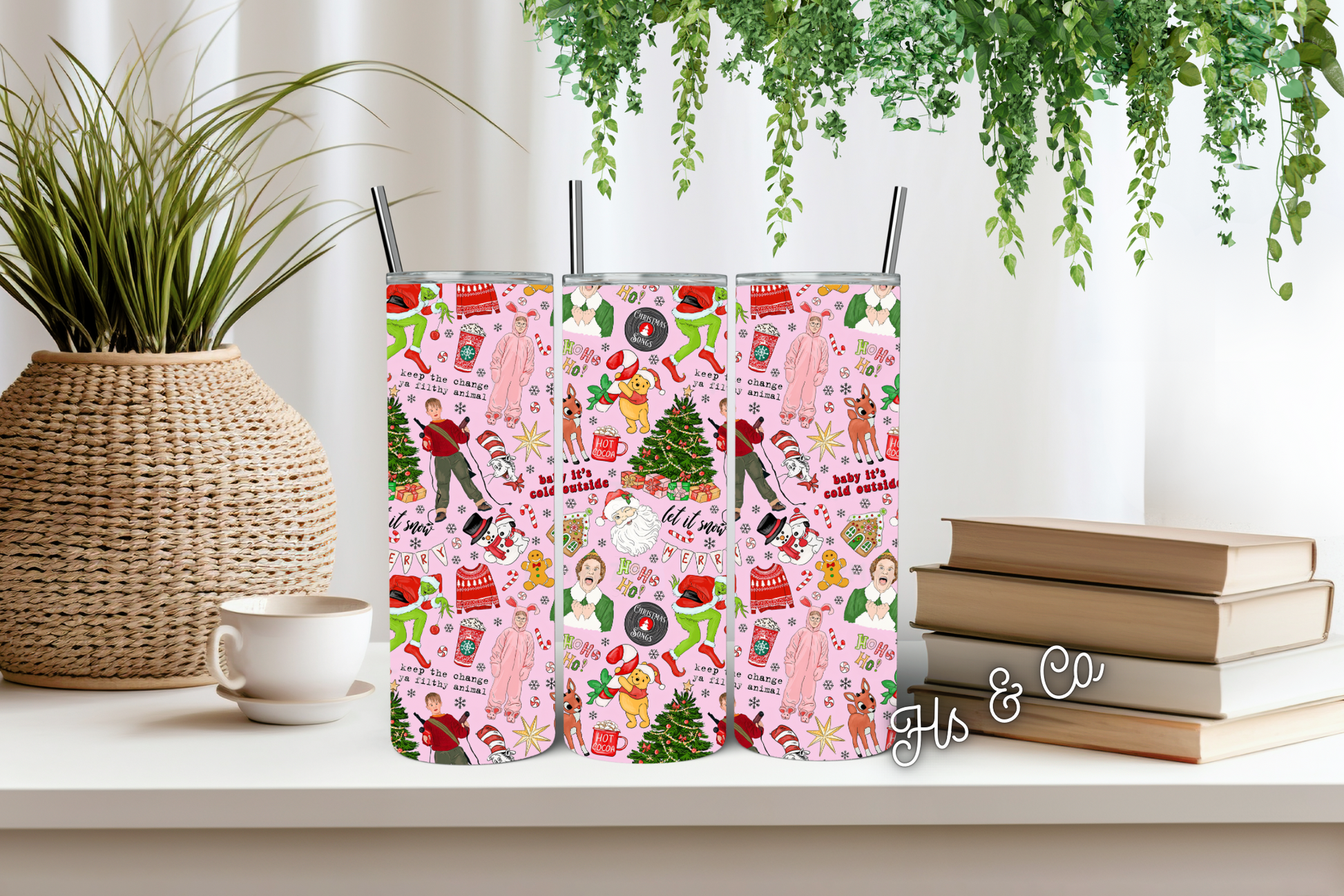 Our tumblers are 20oz stainless steel double walled which allows your drinks to keep cool or hot for up to 12 hours! They come with a straw and lid.