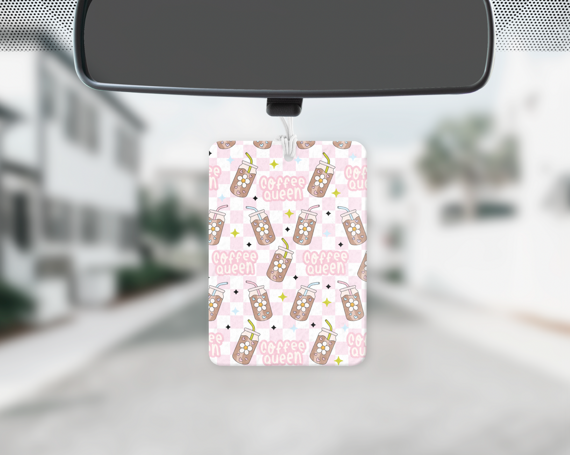 All car freshies are created with sublimation and come with the fragrance supplied into a bottle which allows you to add little or more fragrance as you’d like.
