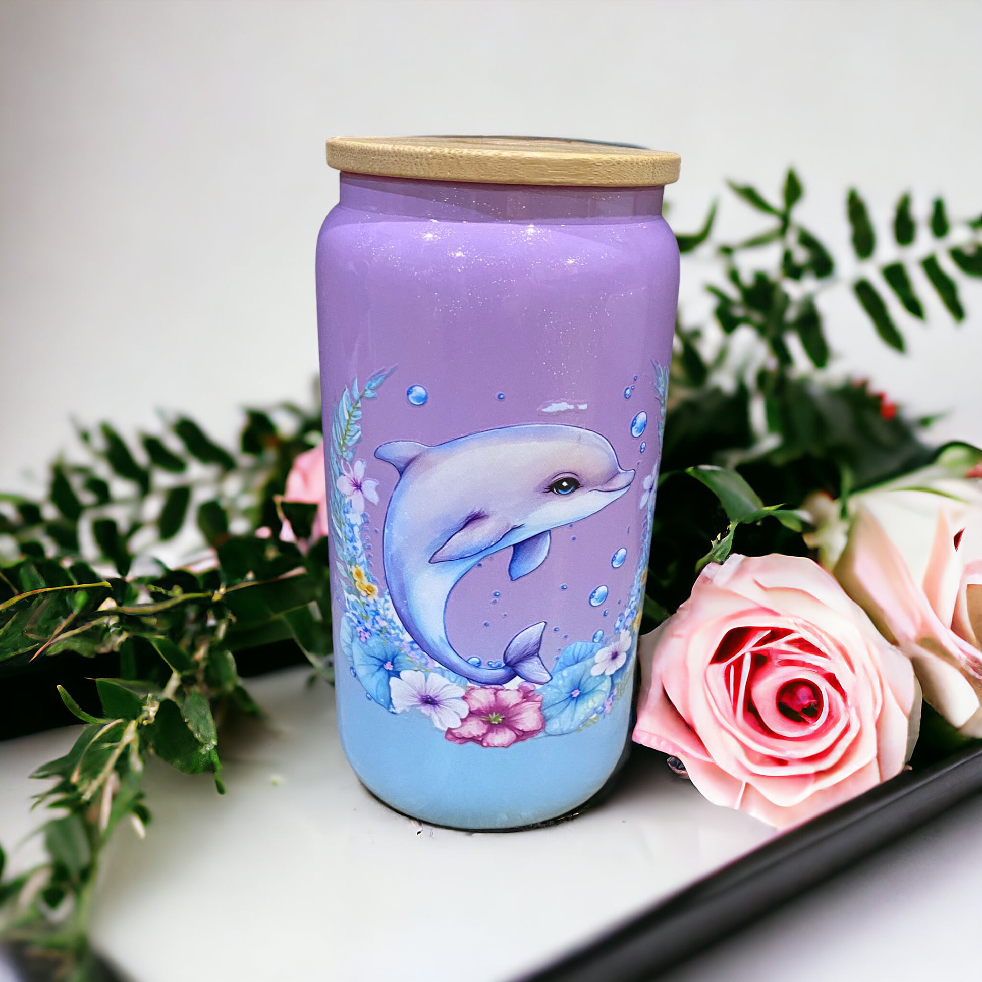 Dolphin ombré blue and purple shimmer Libby glass tumbler
