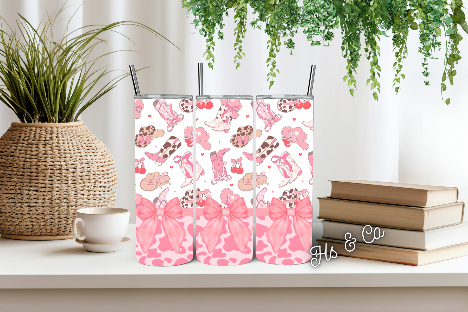 Our tumblers are 20oz stainless steel double walled which allows your drinks to keep cool or hot for up to 12 hours! They come with a straw and lid.