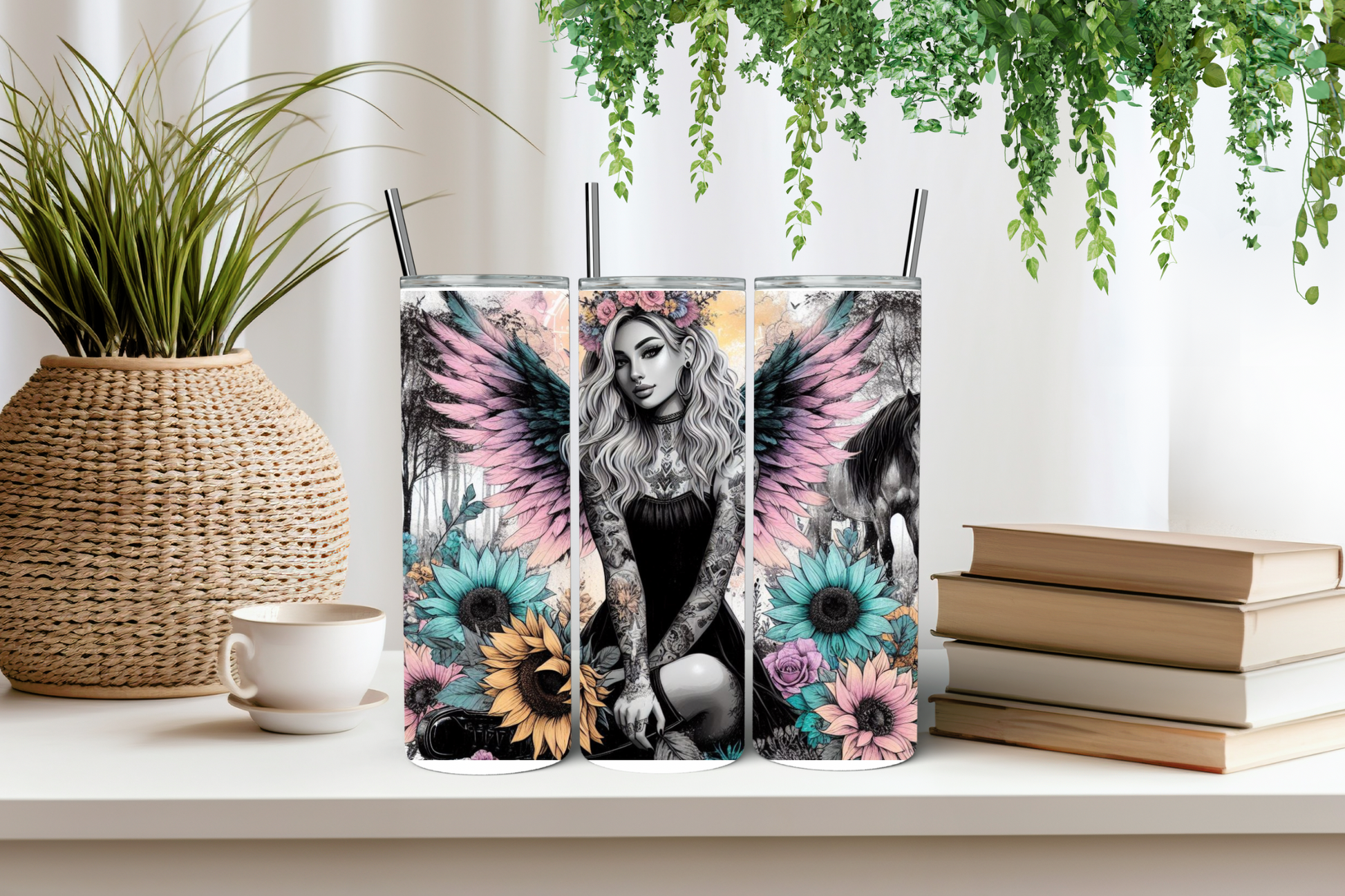 Our tumblers are 20oz stainless steel double walled which allows your drinks to keep cool or hot for up to 12 hours! They come with a straw and lid.