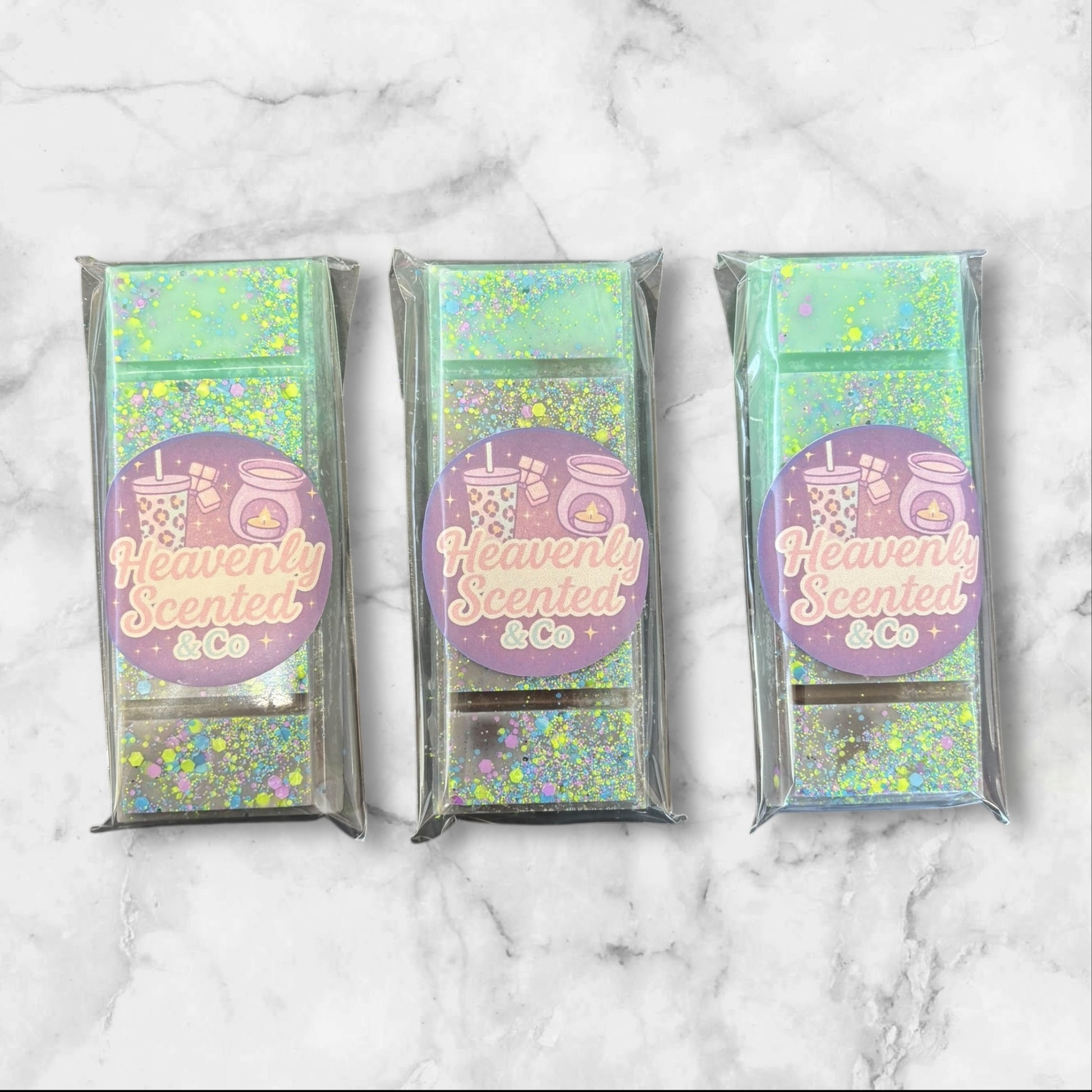 all wax melts are made with soy base wax, safe mica powder and may come with biodegradable glitter to bring an extra sparkle, please note colours may vary and be different due to lighting on your screen