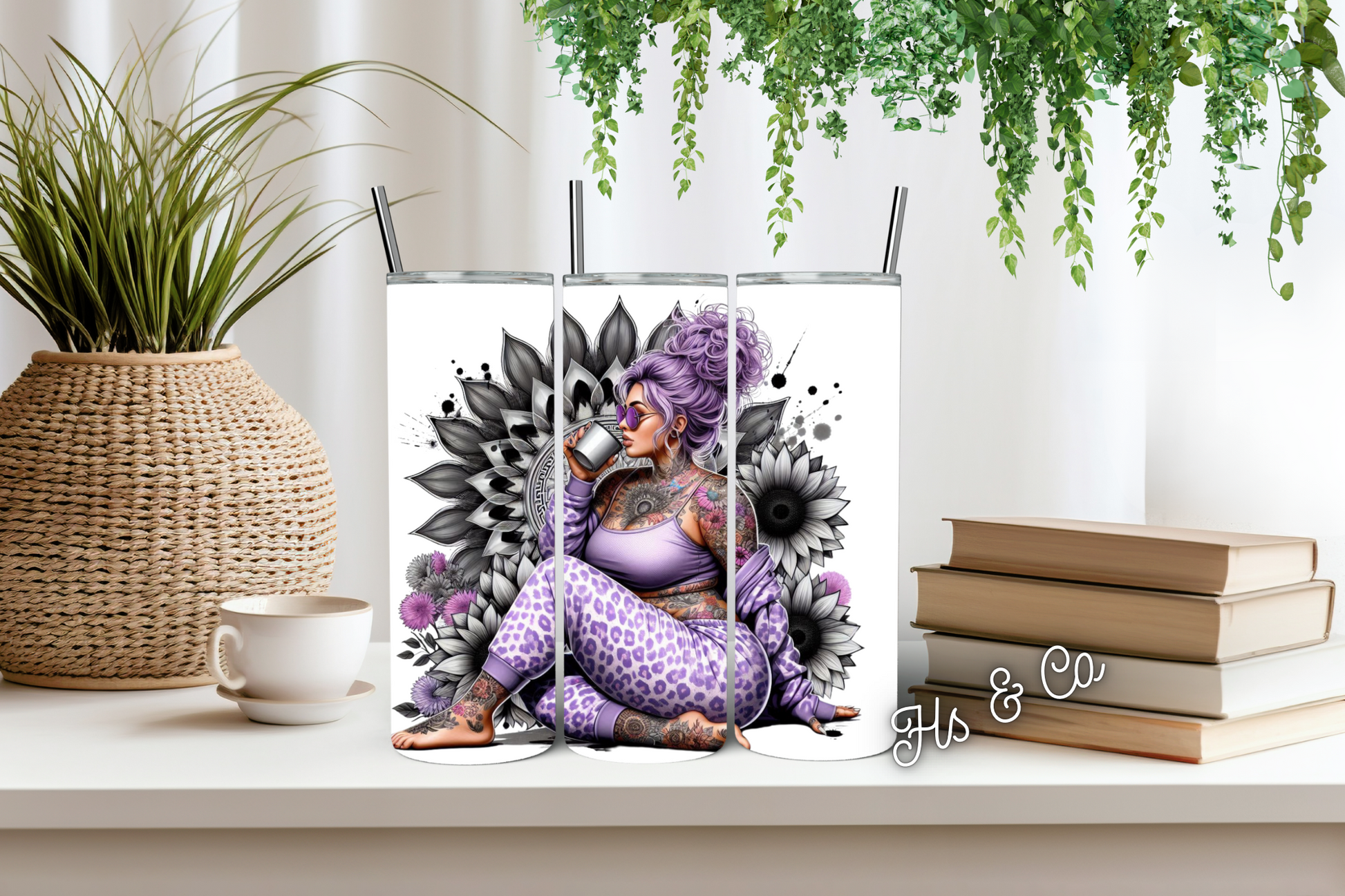 Our tumblers are 20oz stainless steel double walled which allows your drinks to keep cool or hot for up to 12 hours! They come with a straw and lid.