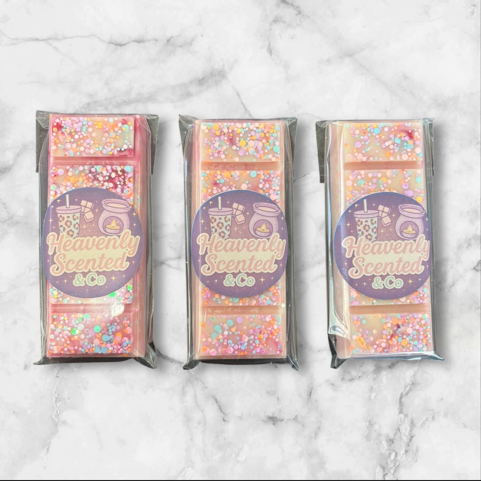 all wax melts are made with soy base wax, safe mica powder and may come with biodegradable glitter to bring an extra sparkle, please note colours may vary and be different due to lighting on your screen