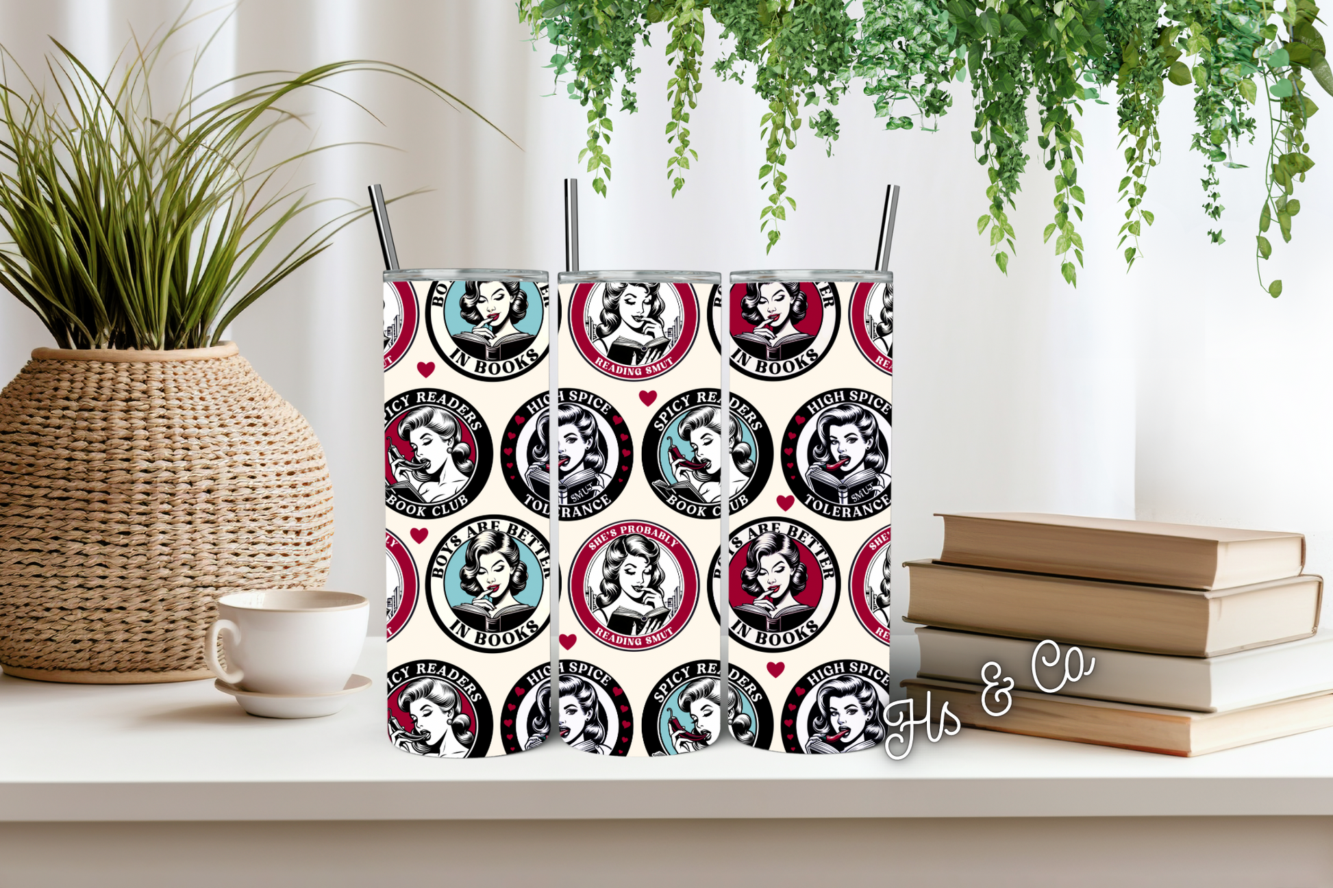 Our tumblers are 20oz stainless steel double walled which allows your drinks to keep cool or hot for up to 12 hours! They come with a straw and lid.