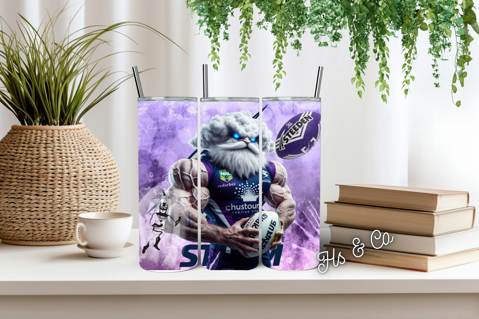 Our tumblers are 20oz stainless steel double walled which allows your drinks to keep cool or hot for up to 12 hours! They come with a straw and lid.