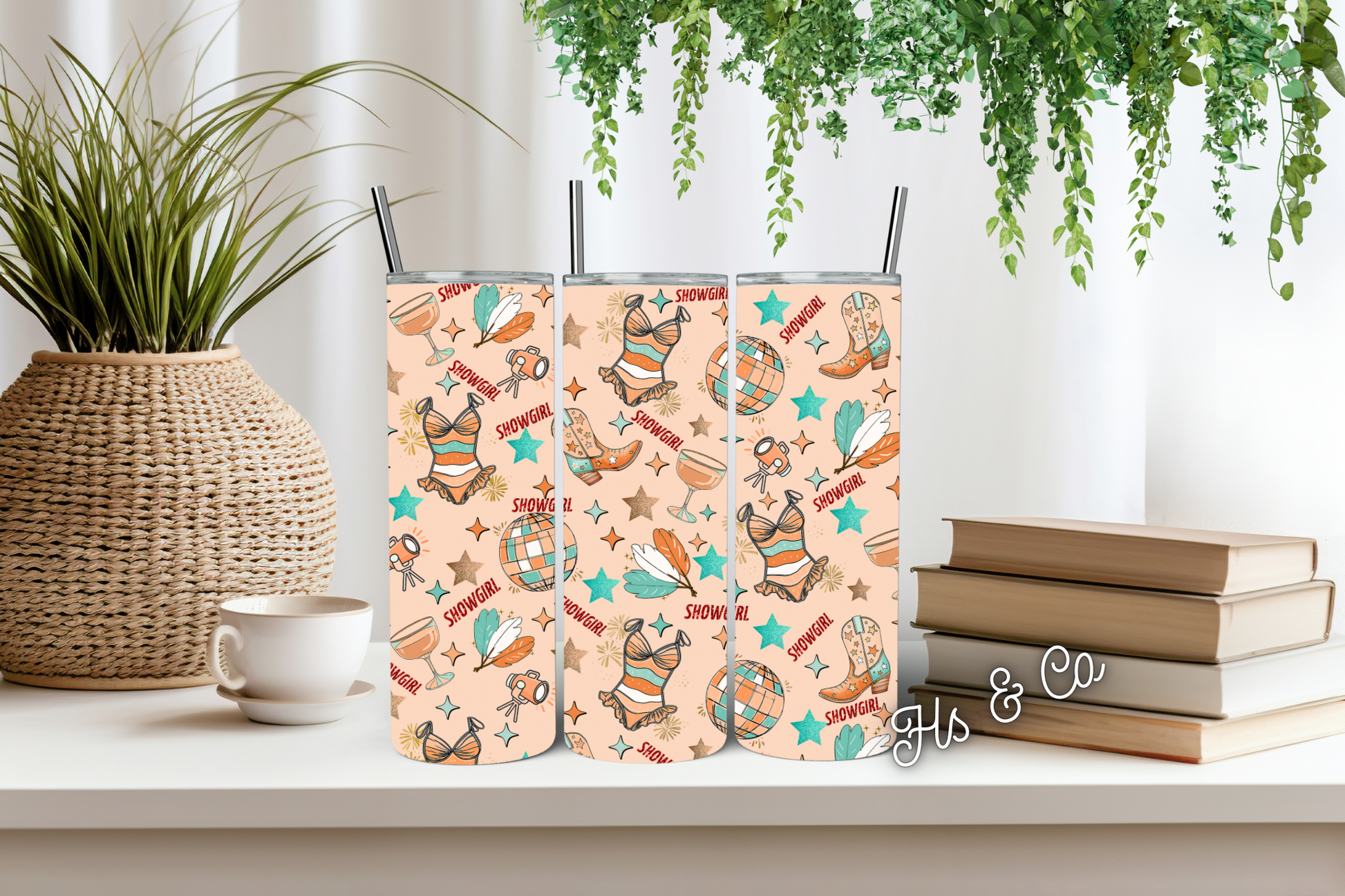 Our tumblers are 20oz stainless steel double walled which allows your drinks to keep cool or hot for up to 12 hours! They come with a straw and lid.