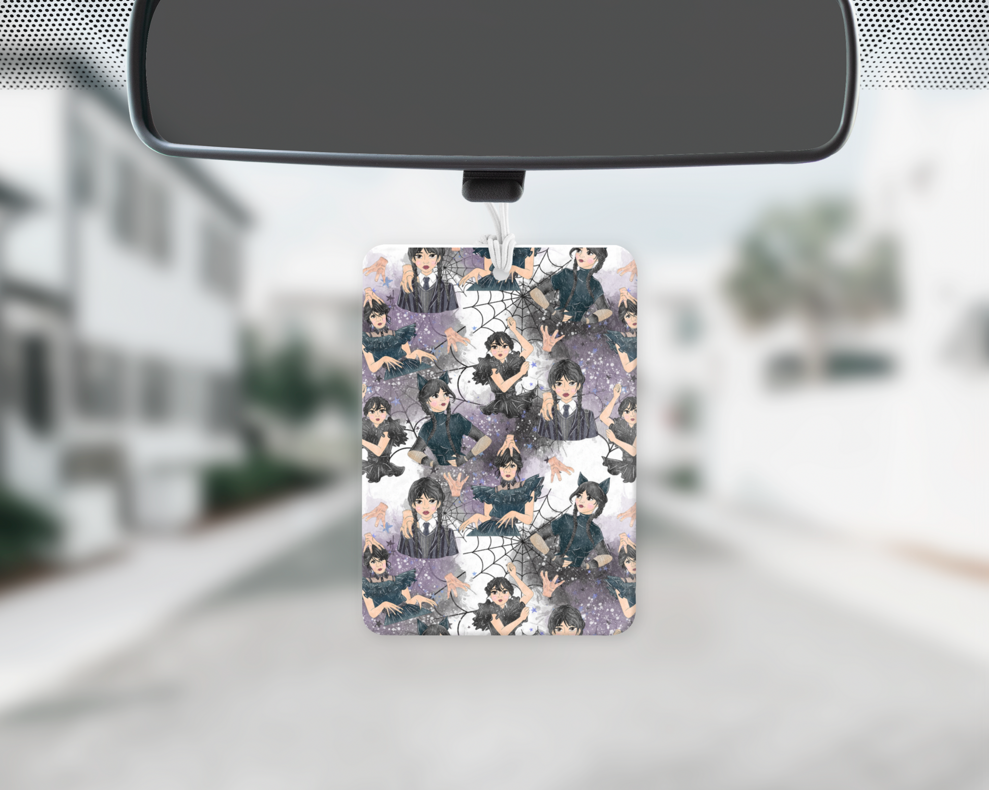 All car freshies are created with sublimation and come with the fragrance supplied into a bottle which allows you to add little or more fragrance as you’d like.