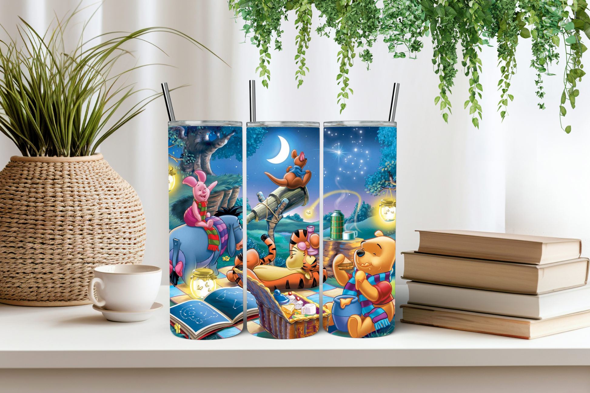 Our tumblers are 20oz stainless steel double walled which allows your drinks to keep cool or hot for up to 12 hours! They come with a straw and lid.